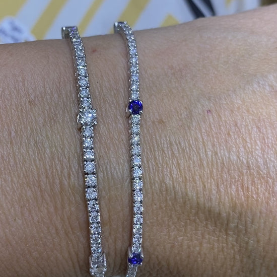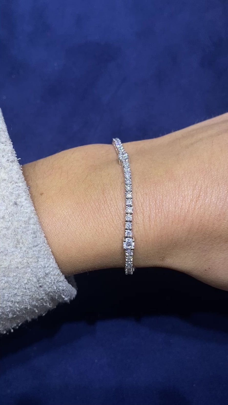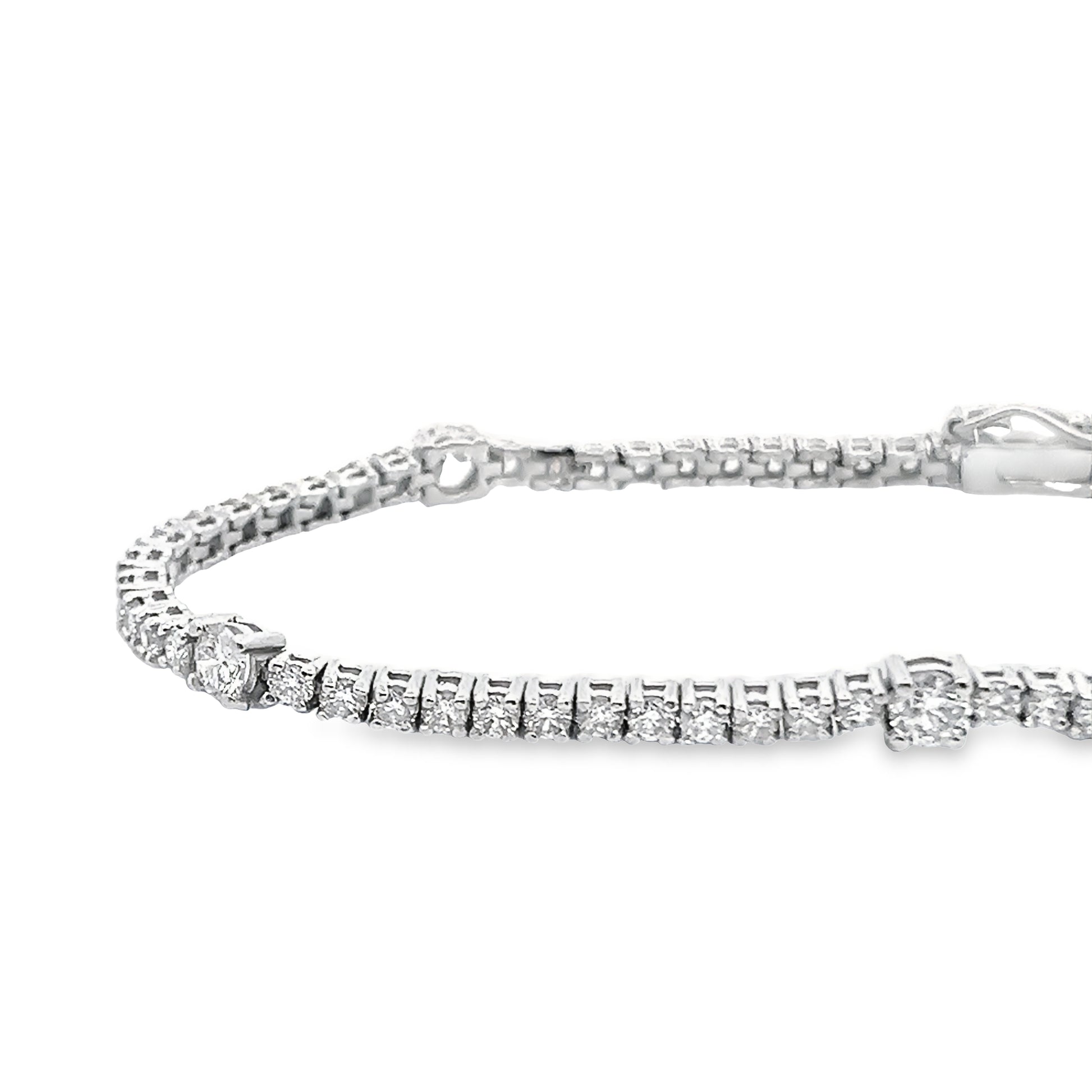 Crafted with stunning 14K white gold, this exquisite diamond tennis bracelet dazzles with its exquisite clusters of glittering diamonds. Featuring a modernist design without losing a touch of luxury. This bracelet exudes elegance and sophistication that will last a lifetime.