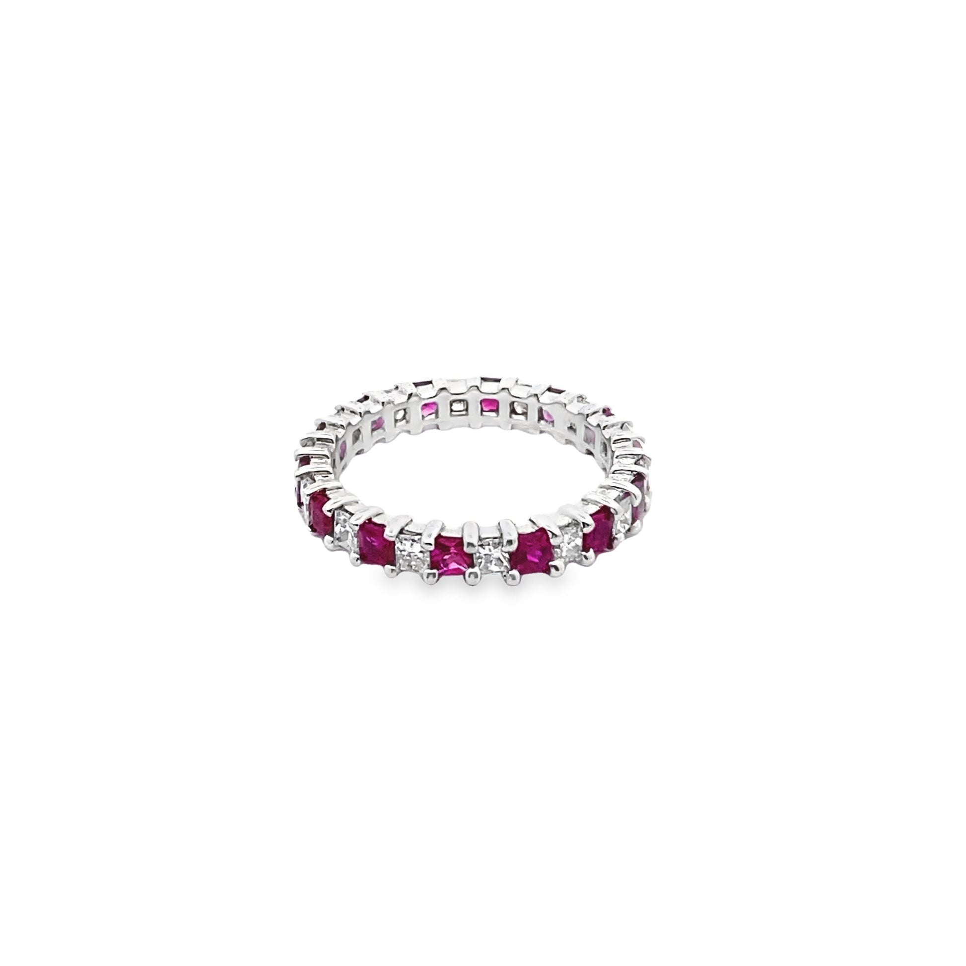 Princess-Cut Ruby and Diamond Eternity Ring in 14K White Gold