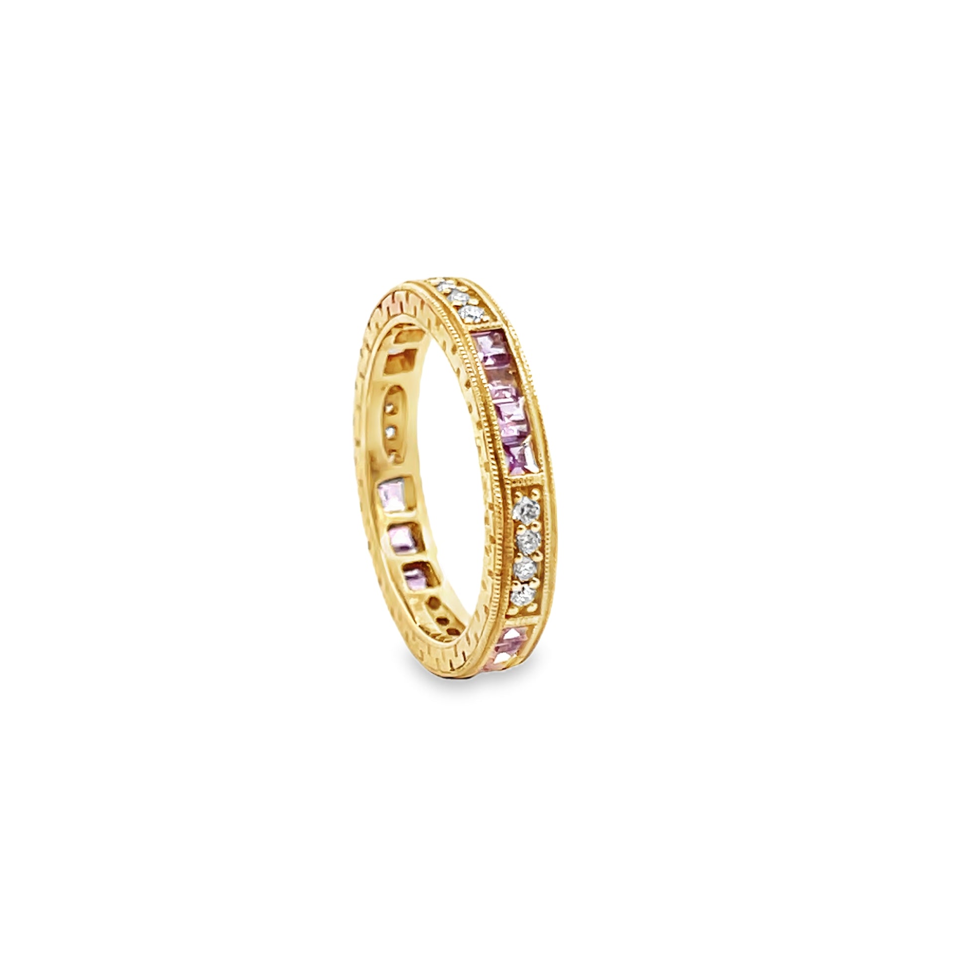 Sapphire and Diamond Eternity Ring in 14K Yellow Gold