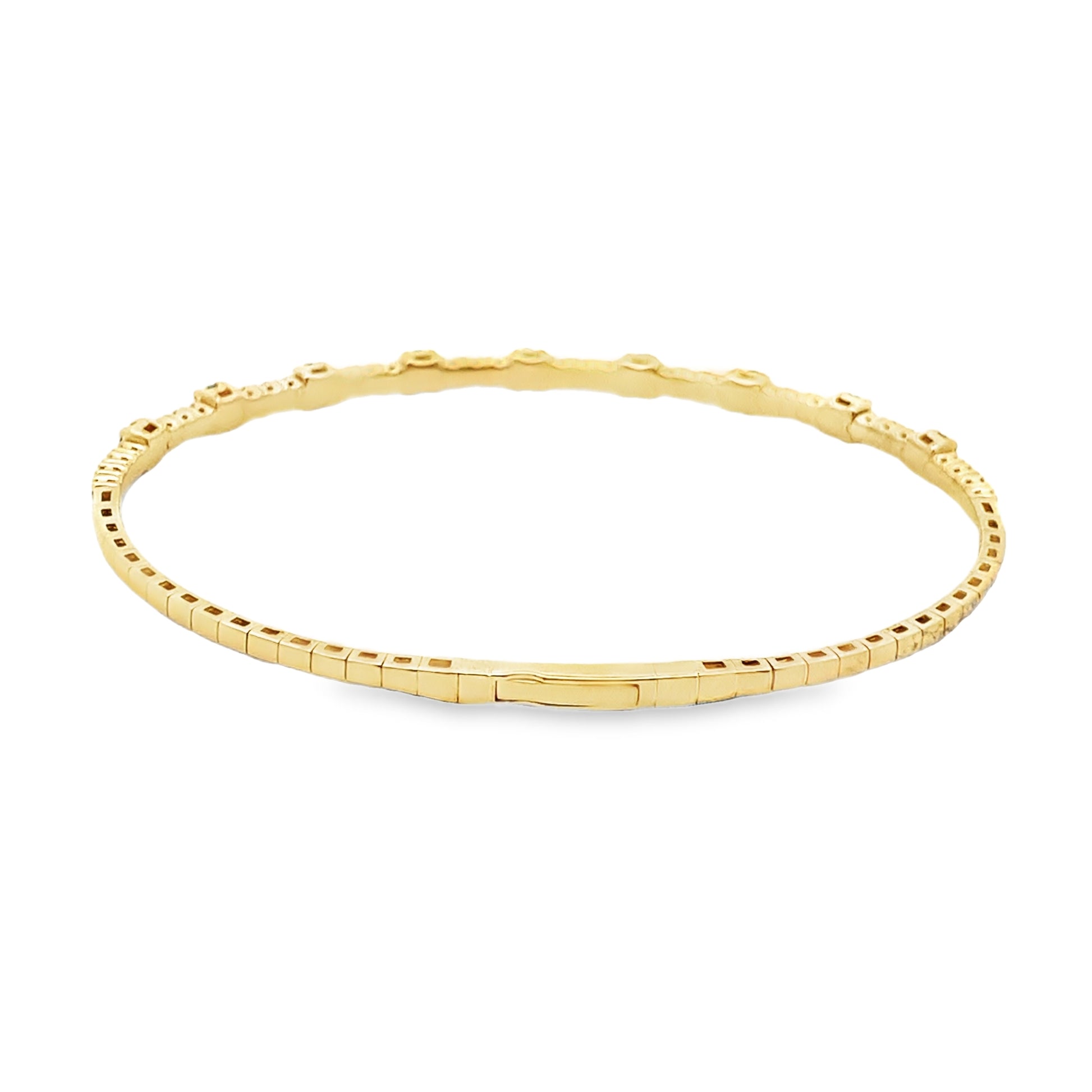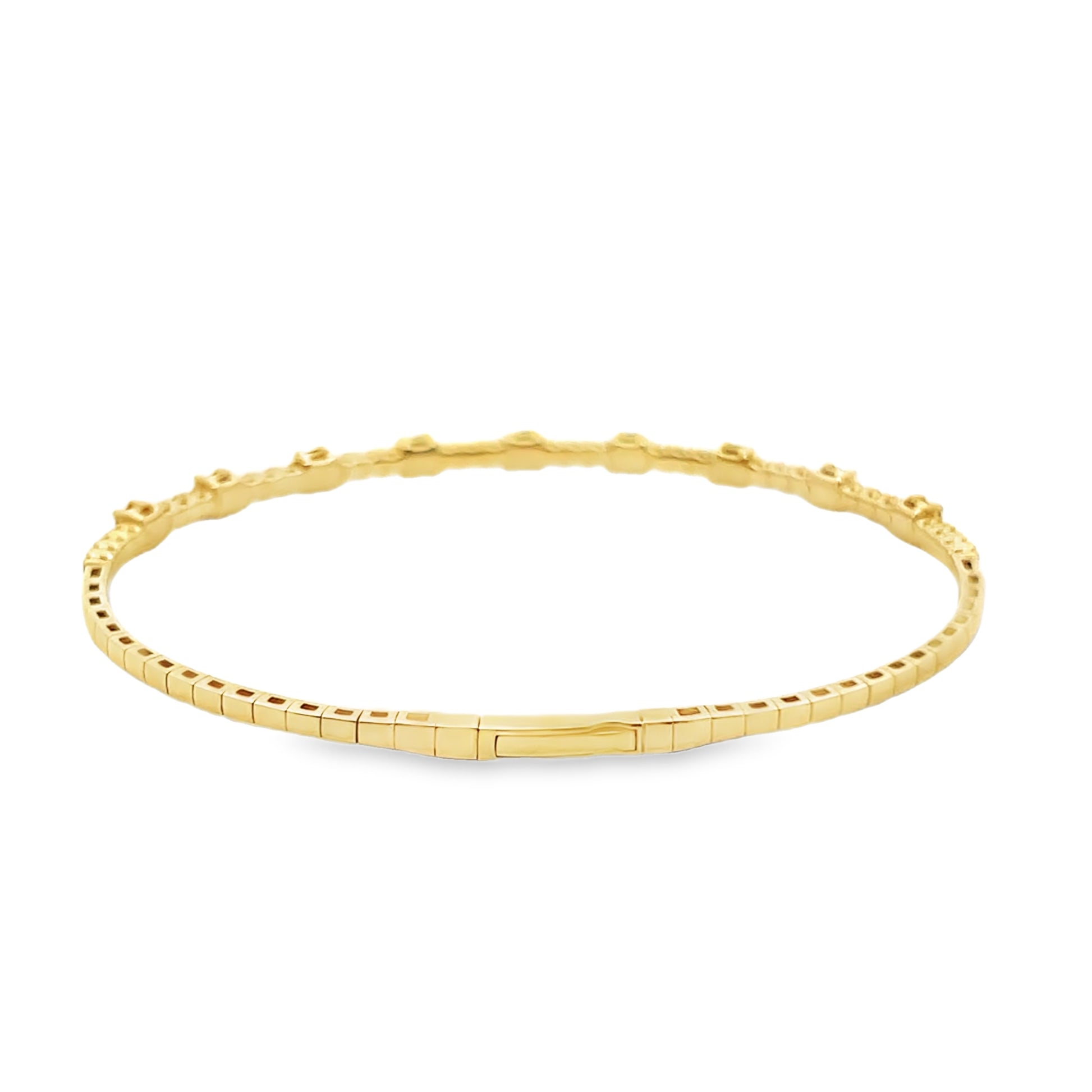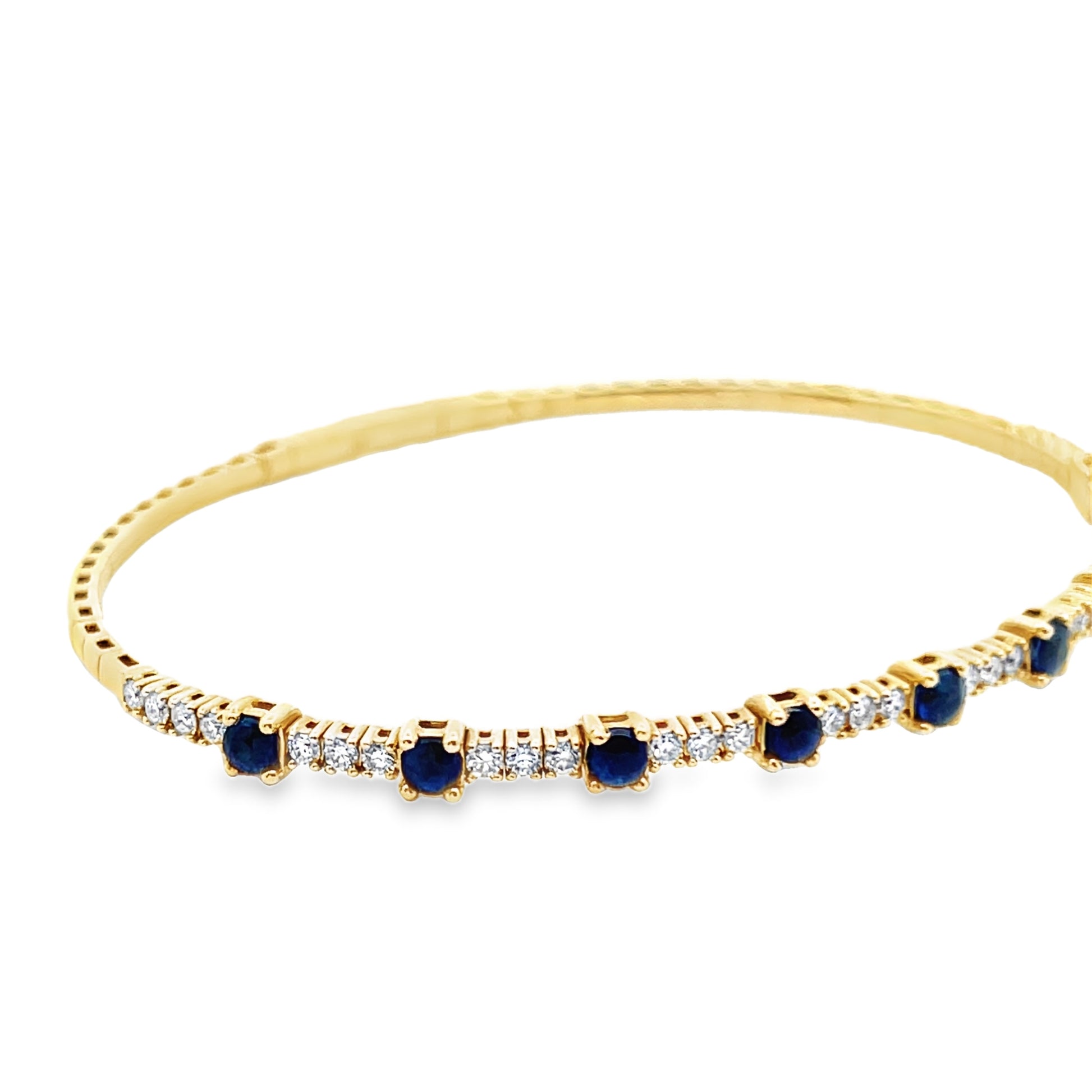 Indulge in luxury with our Sapphire and Diamond Flexible Bangle Bracelet. Crafted in 14K Yellow Gold, this stunning piece features vibrant sapphires and sparkling diamonds. Its flexible design provides both comfort and versatility, making it the perfect addition to any outfit. Elevate your style and make a statement with this breathtaking bracelet.