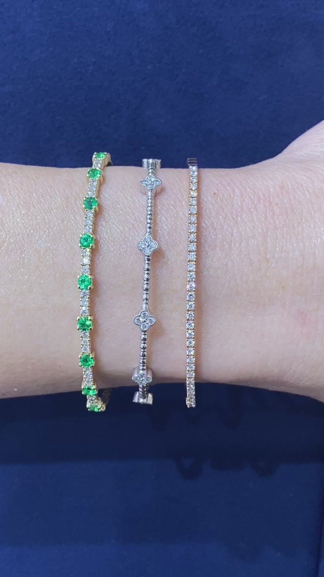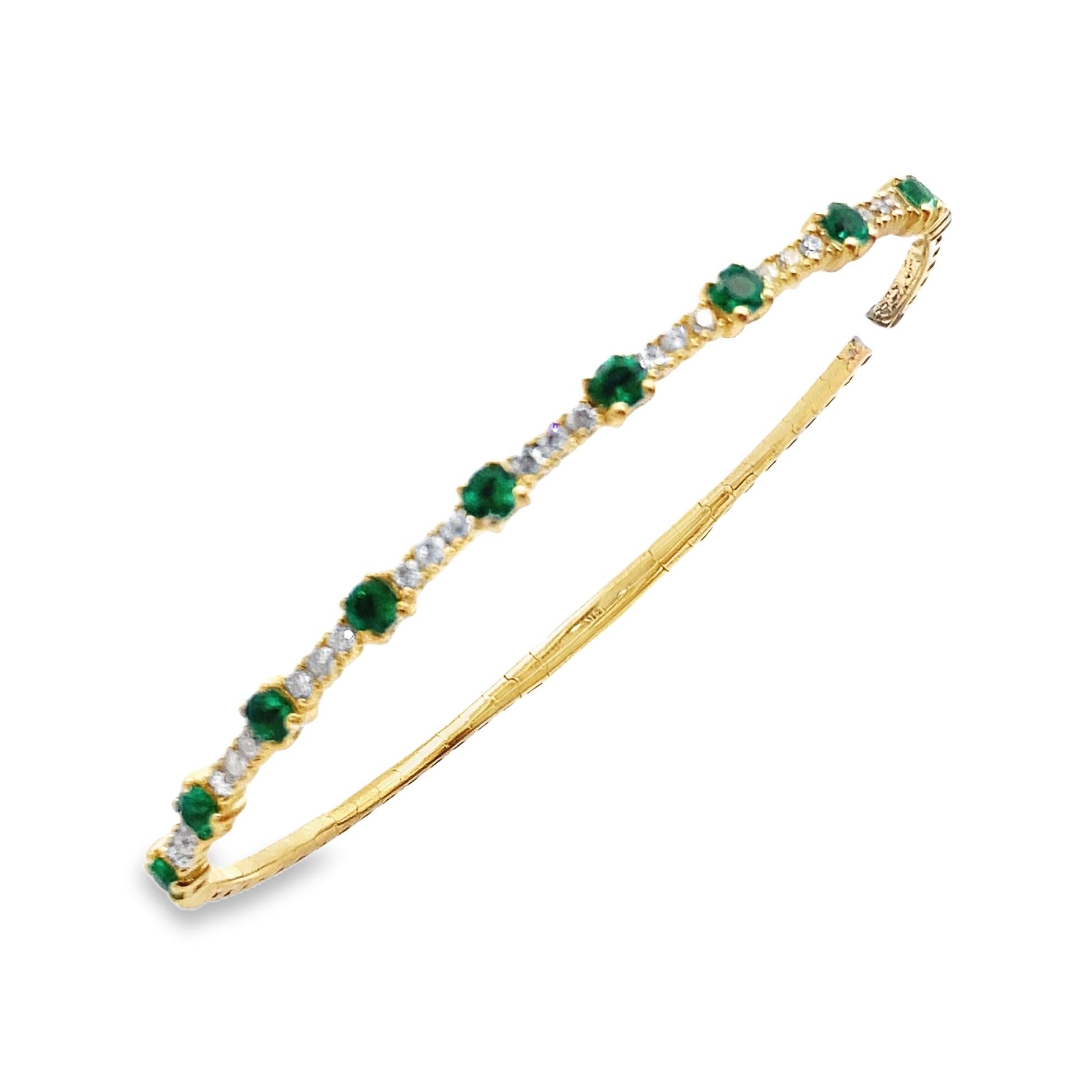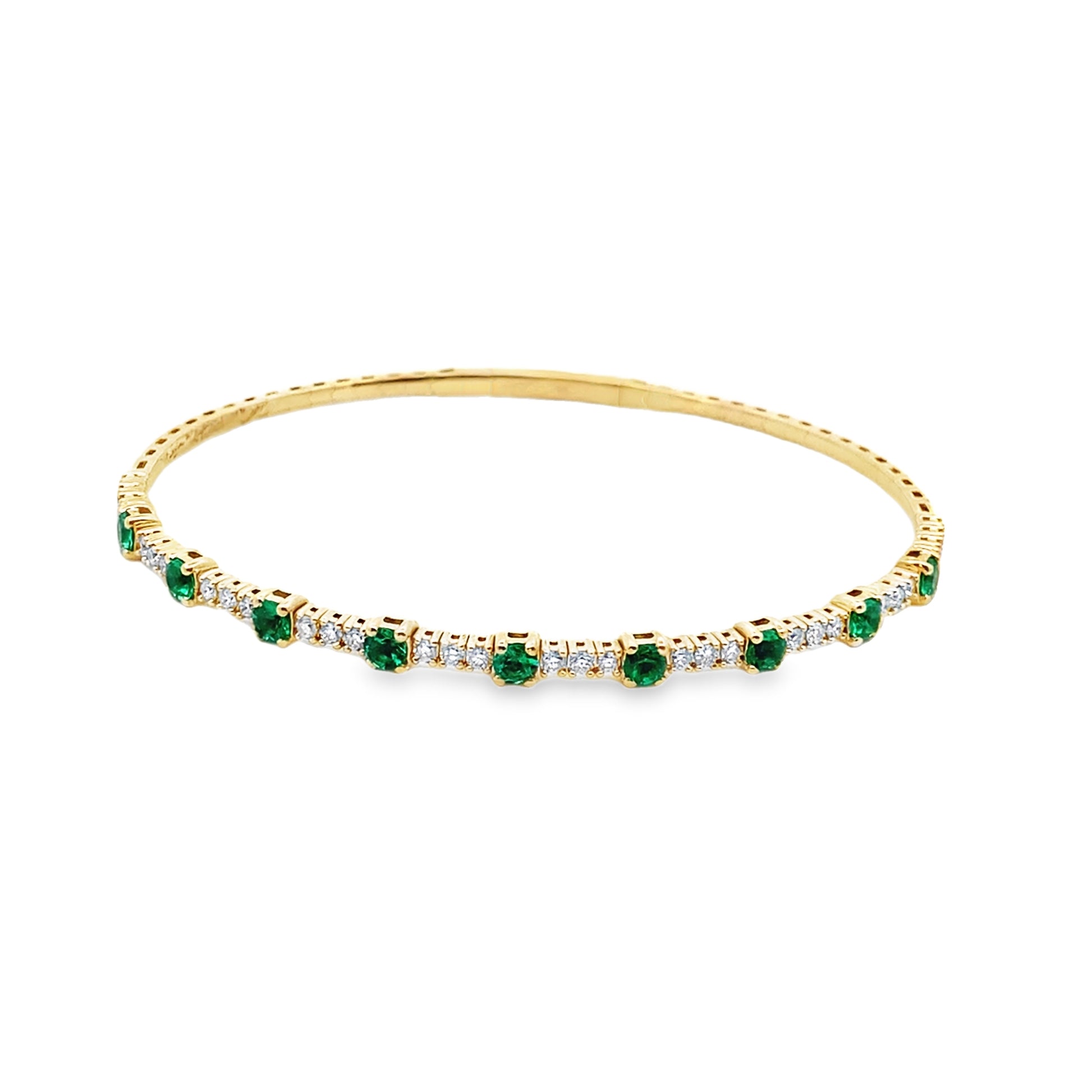 Sapphire or Emerald and Diamond Flexible Bangle Bracelet in 14K Yellow Gold