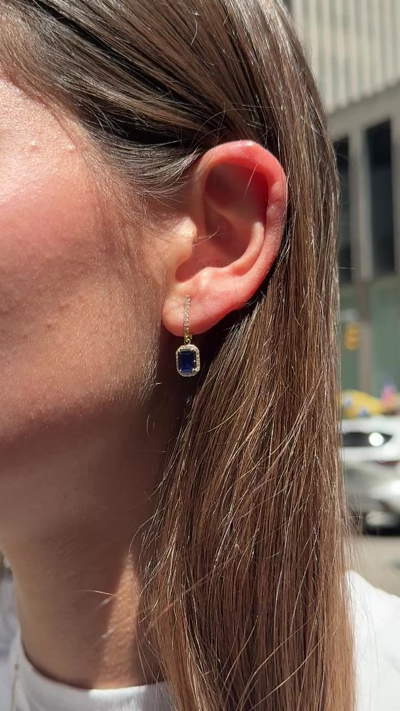 Elevate your style with these stunning Sapphire and Diamond Halo Dangle Earrings. Crafted in 14K Yellow Gold, these elegant earrings feature a brilliant halo of diamonds surrounding a vibrant sapphire gemstone. A timeless and luxurious addition to any jewelry collection.