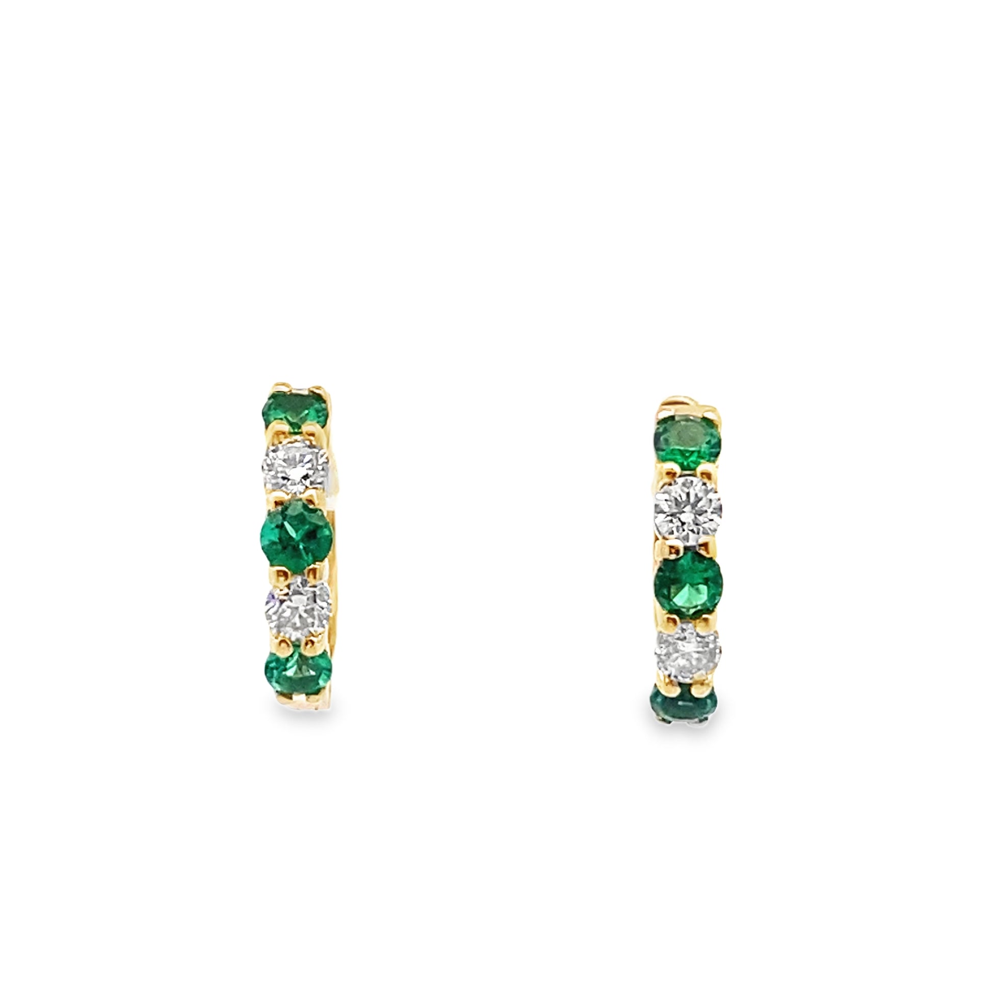 These 14K Gold Huggie Hoop Earrings feature sparkling sapphires or emeralds and diamonds for an elegant look. Enjoy the stunning contrast of the deep blues or bright greens against the bold shine of the gold. Perfect for any occasion, these earrings will add a touch of sophistication to any outfit.