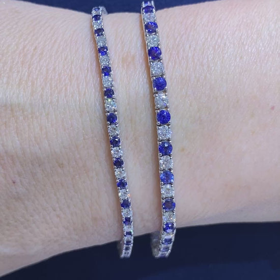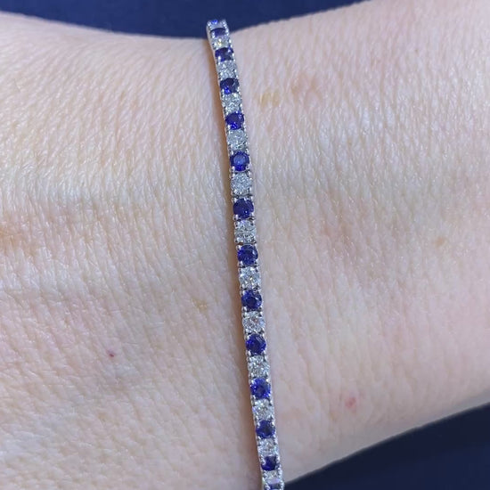 Alternating Blue Sapphire and Diamond Tennis Bracelet in 14K White Gold