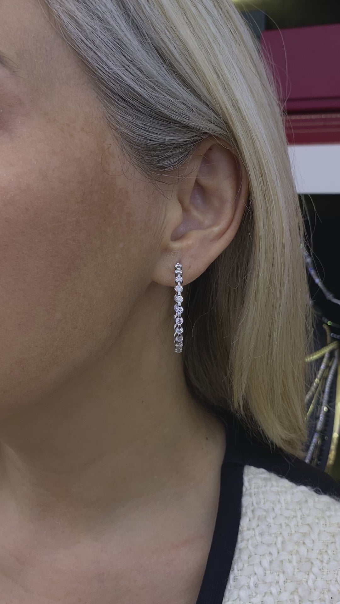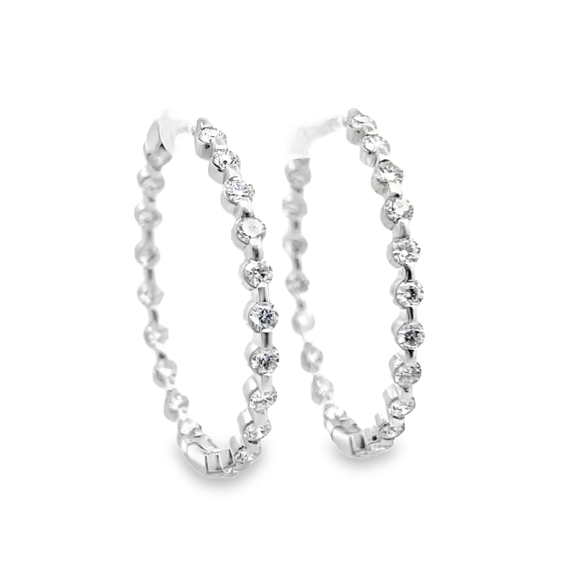 Expertly crafted in 14K white gold, these single prong diamond hoops add a touch of elegance to any outfit. The single prong design ensures a secure fit while the sparkling diamonds give off a luxurious shine. Upgrade your jewelry collection with these timeless hoops.