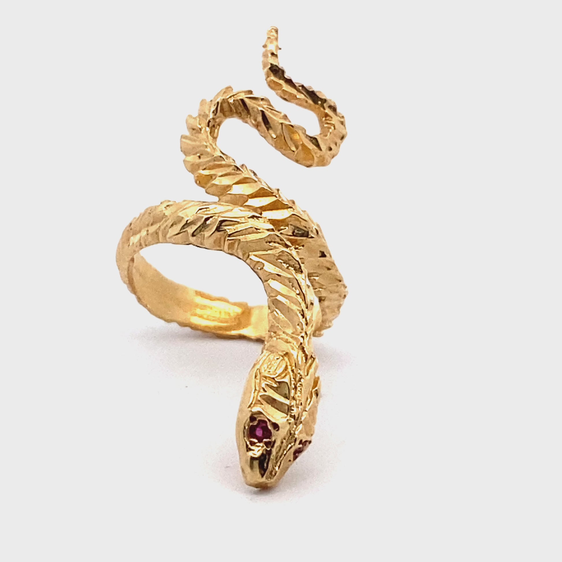 Expertly crafted with 14K Yellow Gold and uniquely designed with stunning rubies, this Snake Wrap Ring exudes luxury and sophistication. Its unique design and intricate details make it a perfect accessory for any occasion. Elevate your style with this edgy ring and make a statement wherever you go.