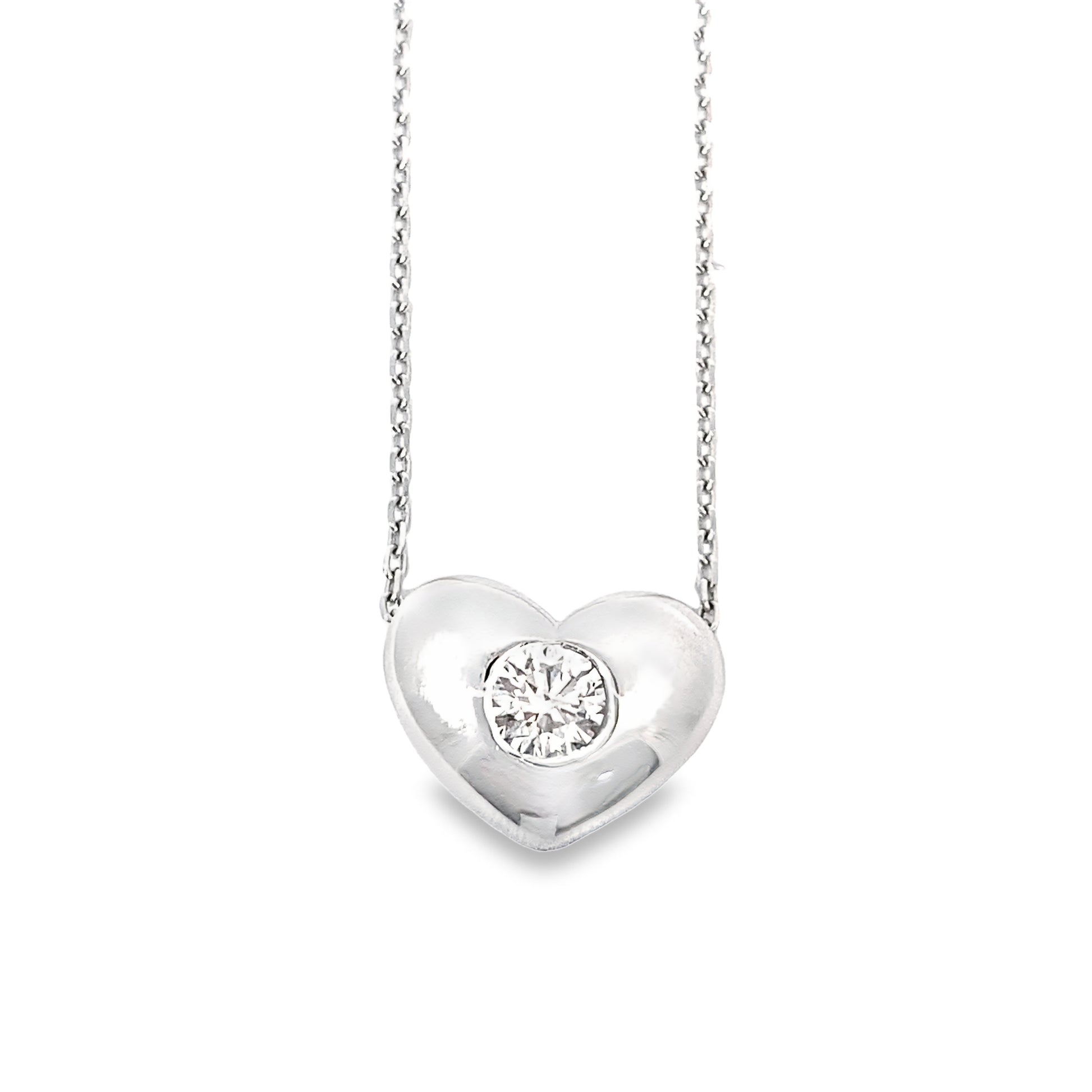 Solitaire Diamond Heart Pendant Necklace in 14K White Gold