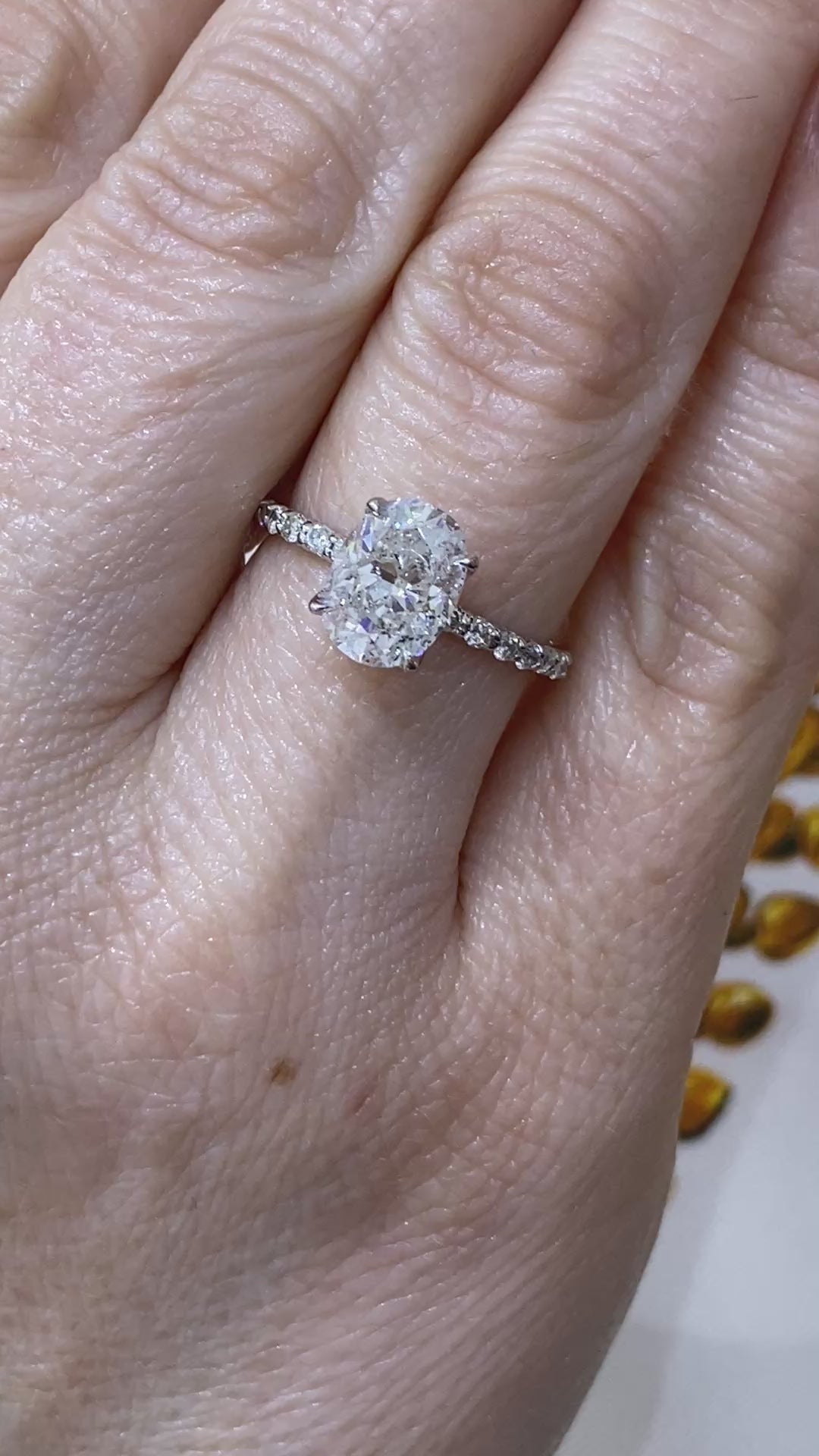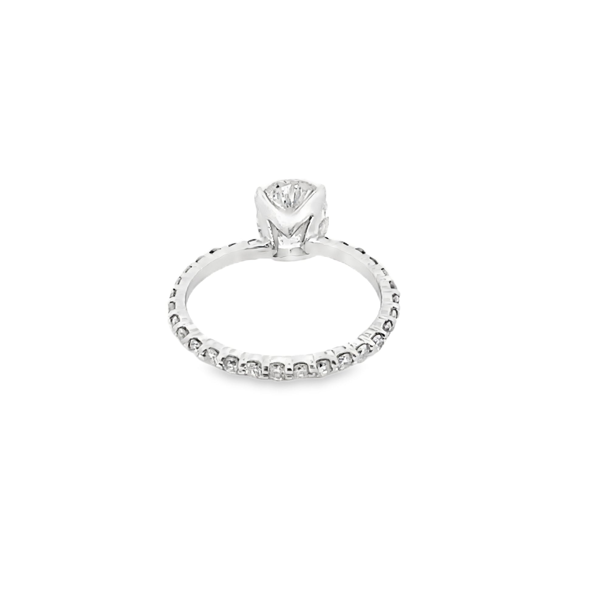 This stunning Oval-Cut Diamond Engagement Ring features micro-pave side stones in 14K white gold. Sparkling and elegant, this ring will make a statement of love and commitment. The oval-cut diamond adds a unique touch, while the micro-pave side stones provide extra brilliance. Perfect for those who want a modern and timeless engagement ring.