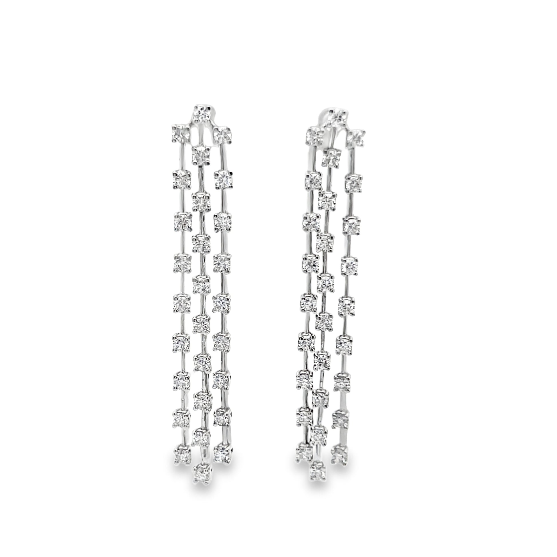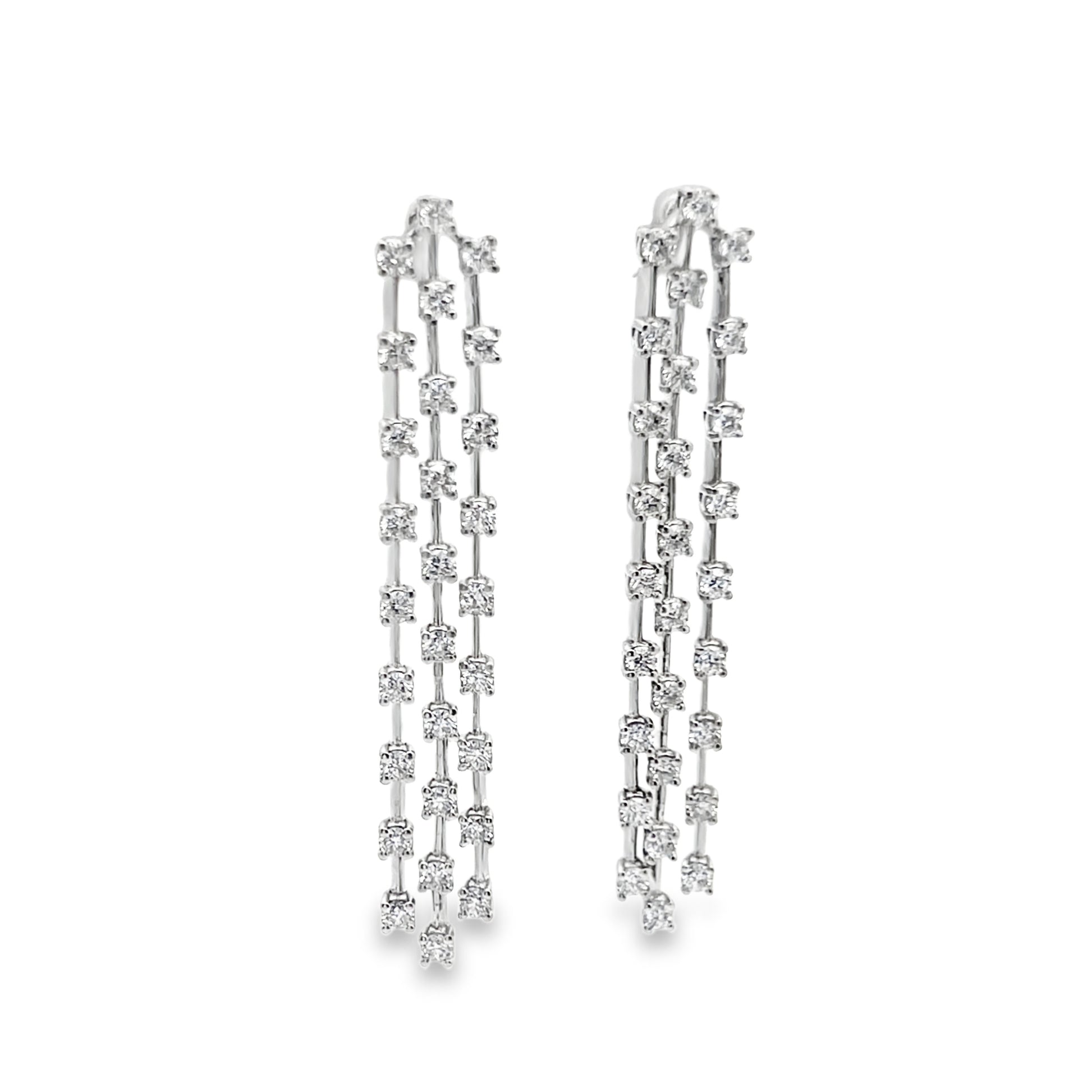 Give your jewelry collection a stunning and timeless update with these gorgeous three-row linear dangle earrings. They will complete your elegant look. Round brilliant-cut diamonds enhance the beauty and sparkle.