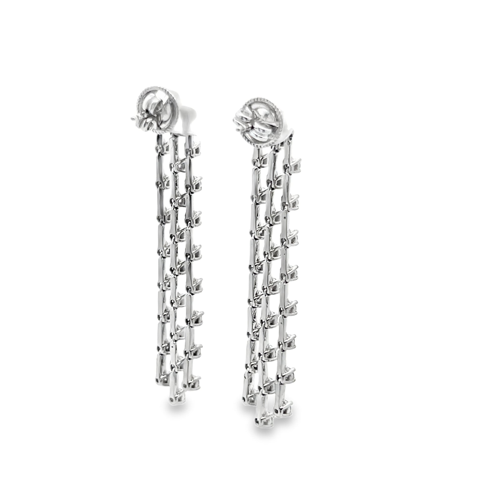 Three-Row Linear Drop Diamond Earrings in 14K White Gold