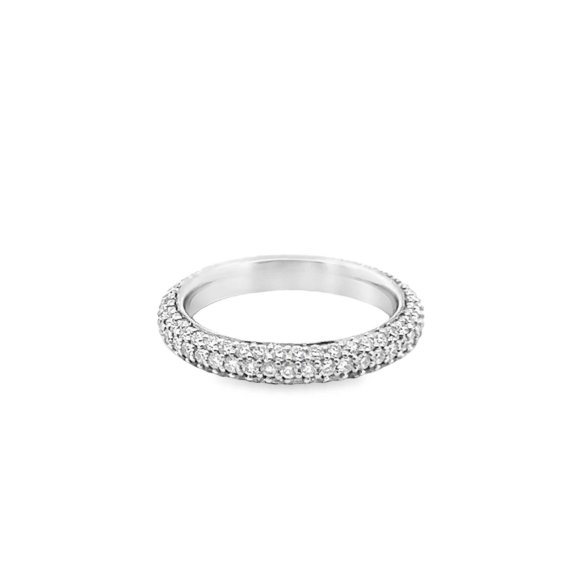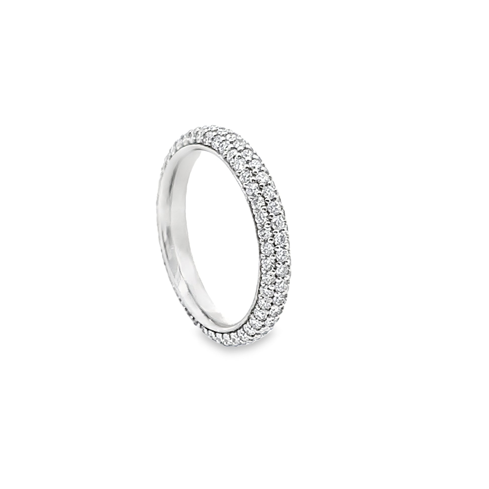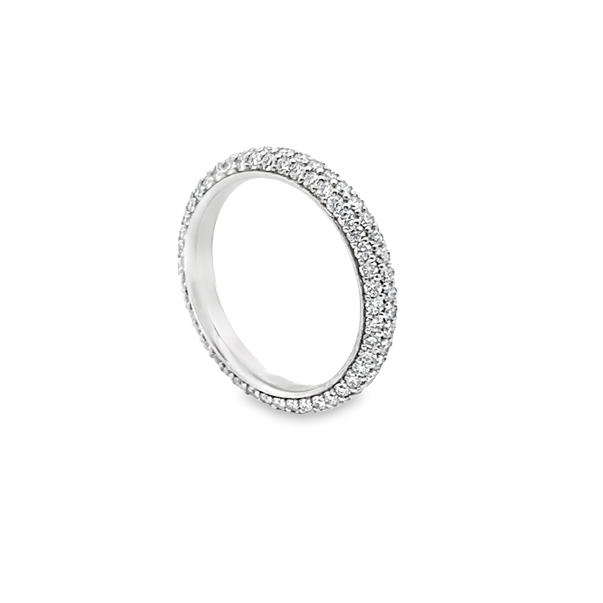 This breathtaking eternity ring will take your breath away with its three rows of perfectly placed pave diamonds. Made of 14K White Gold, this ring is a stunning symbol of eternal love and commitment. Elevate any outfit and express your passion for your loved one with this luxurious ring.