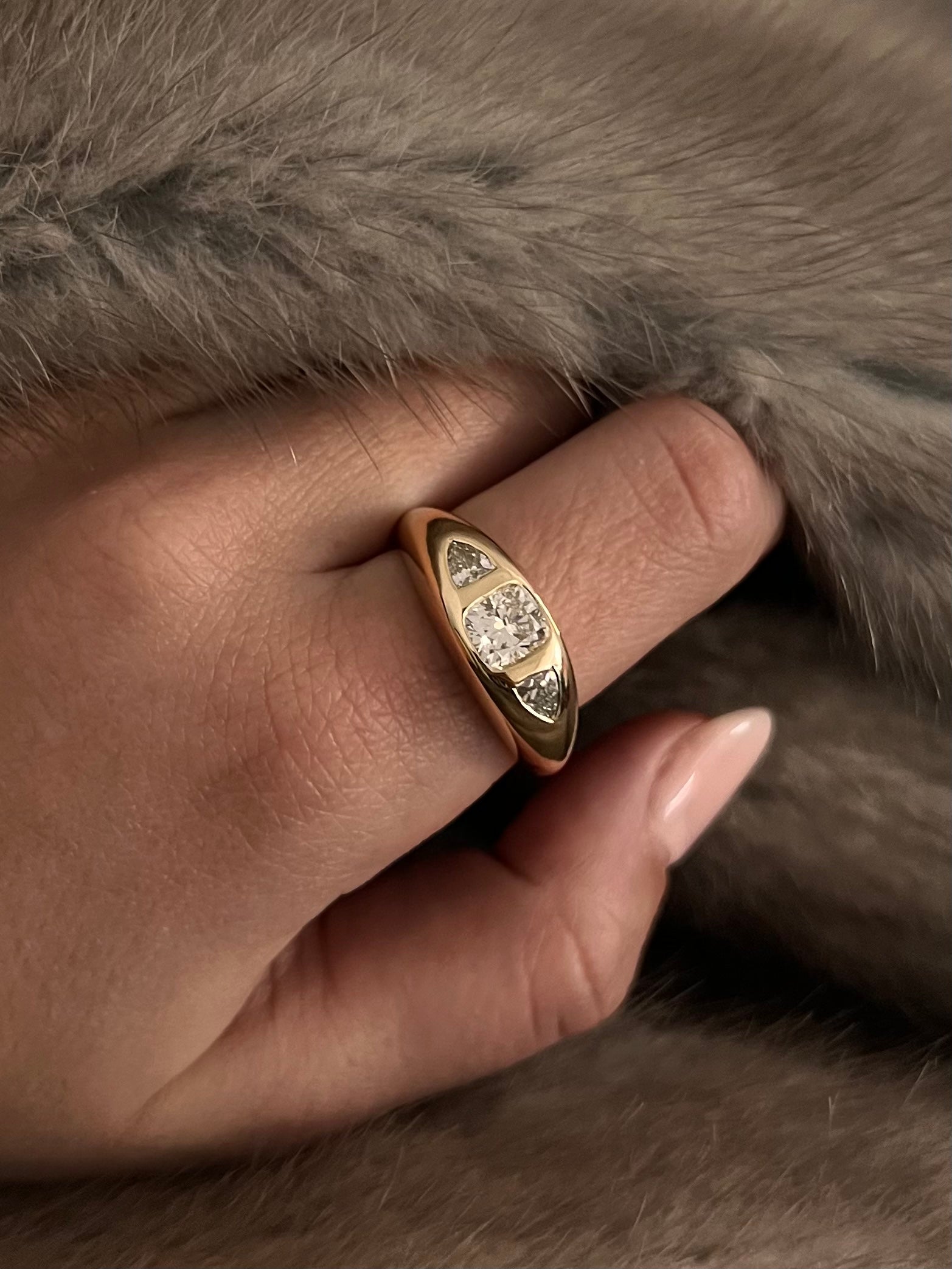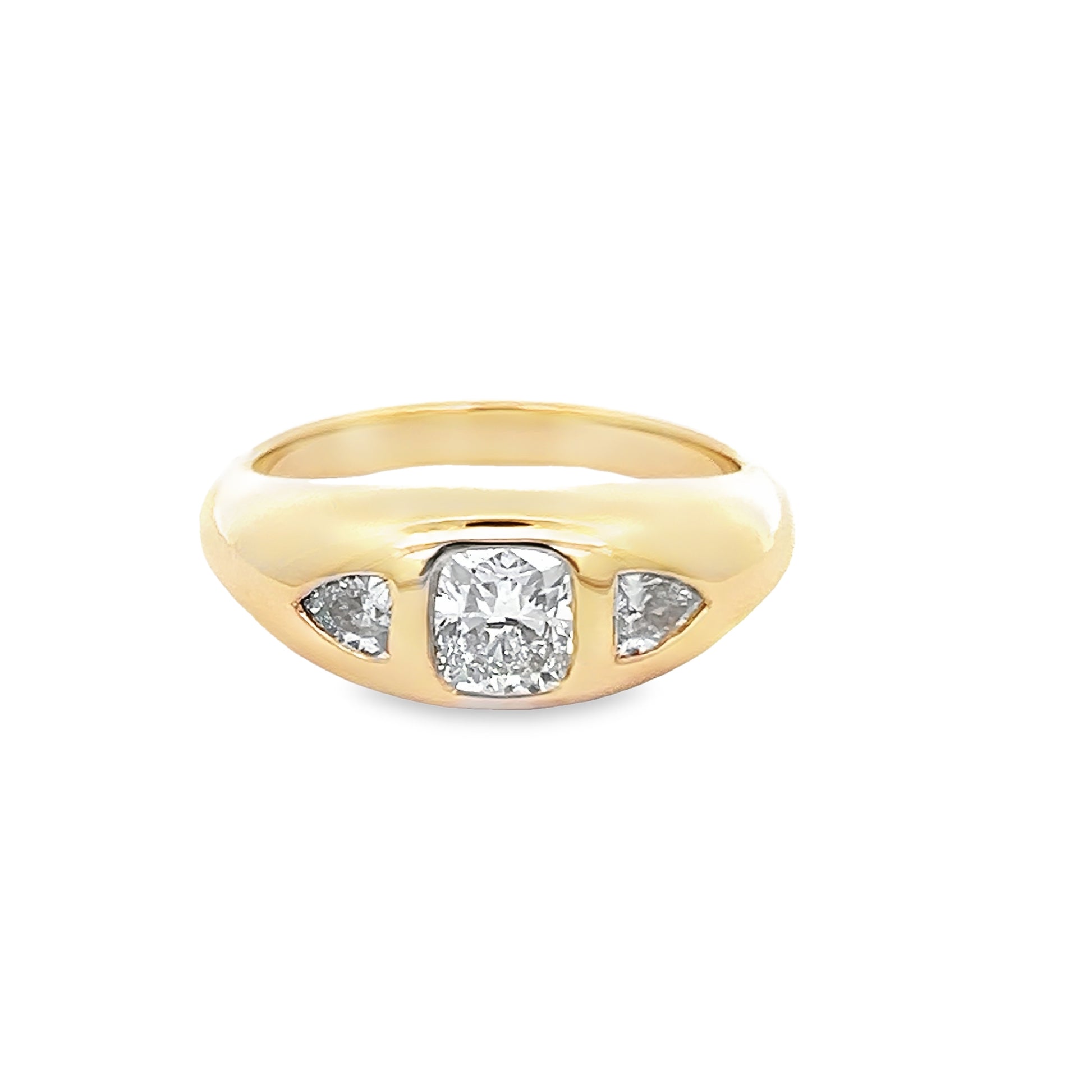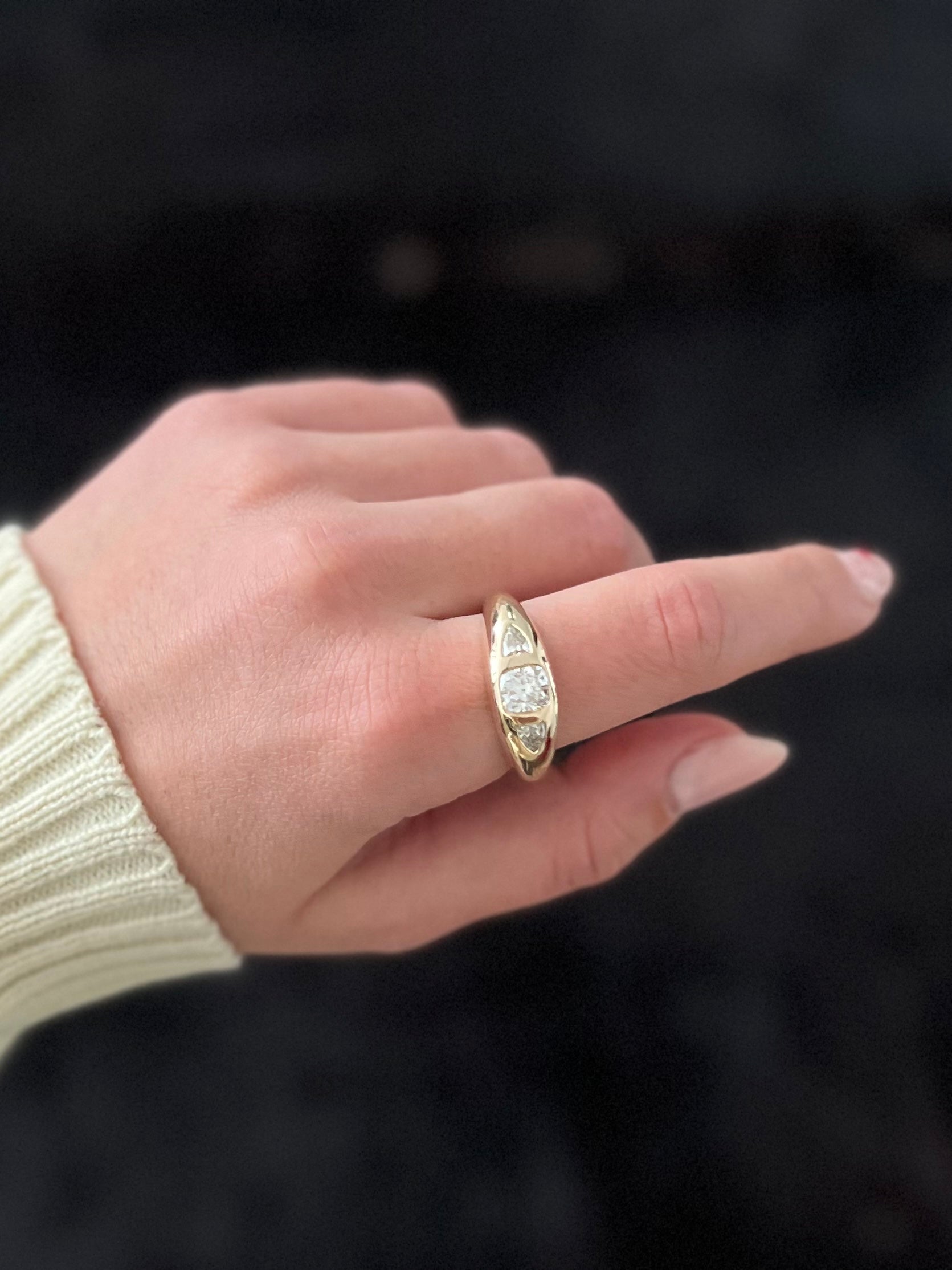 Three-Stone Diamond Spaceship Ring in 14K Yellow Gold