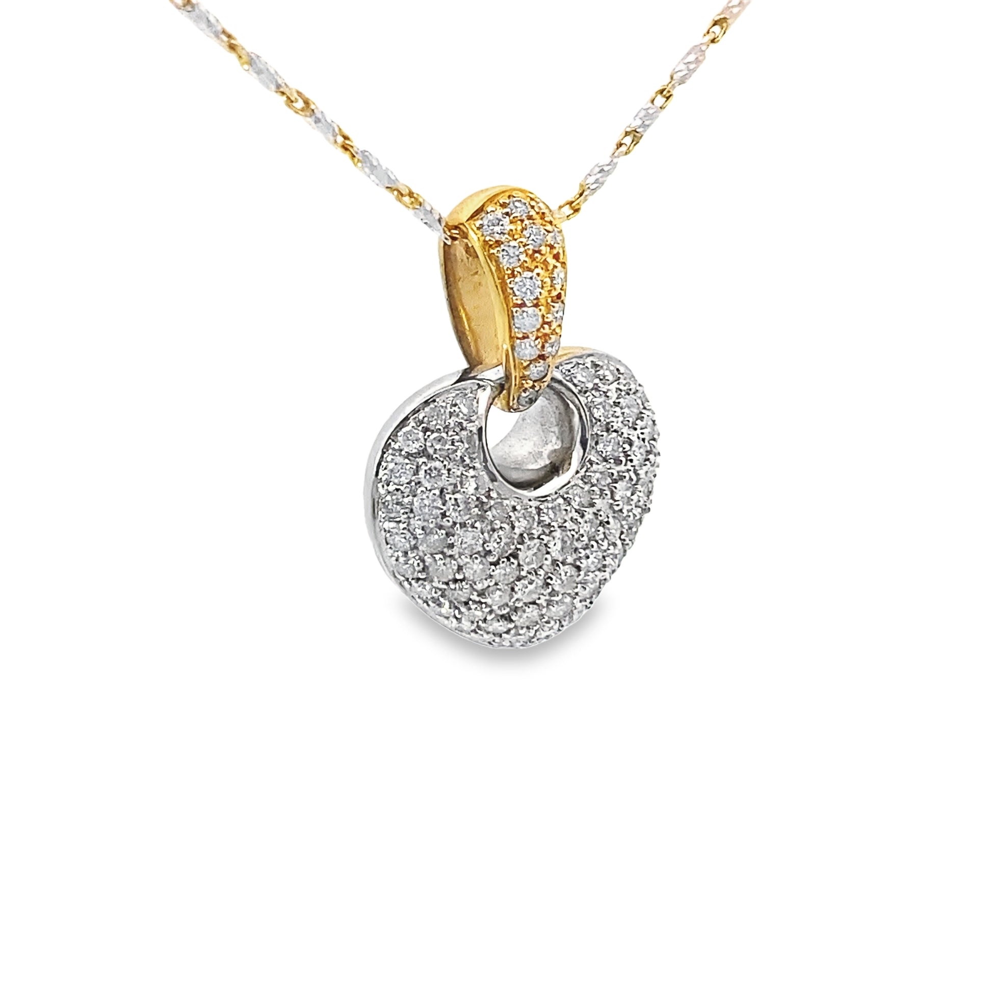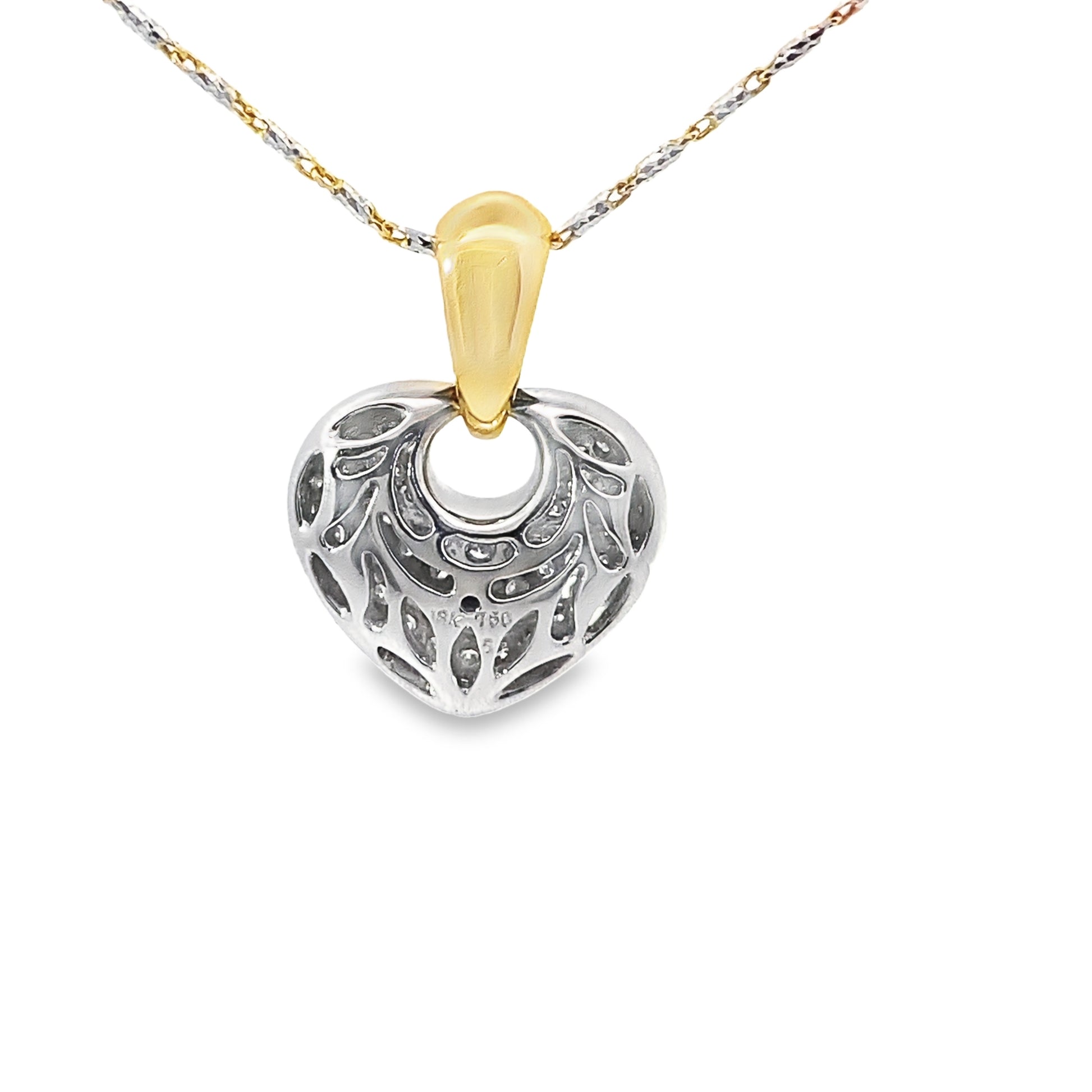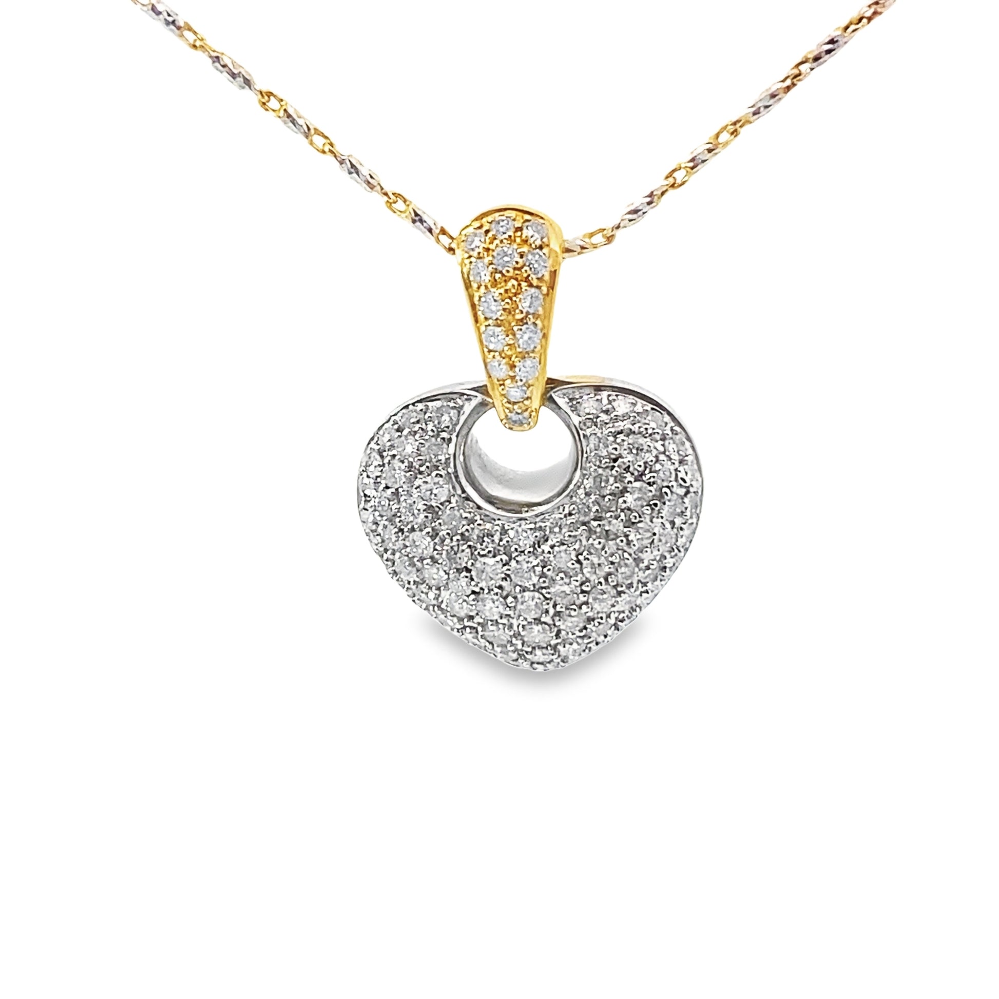 Two Tone Diamond Heart Pendant Necklace in 18K Yellow and White Gold