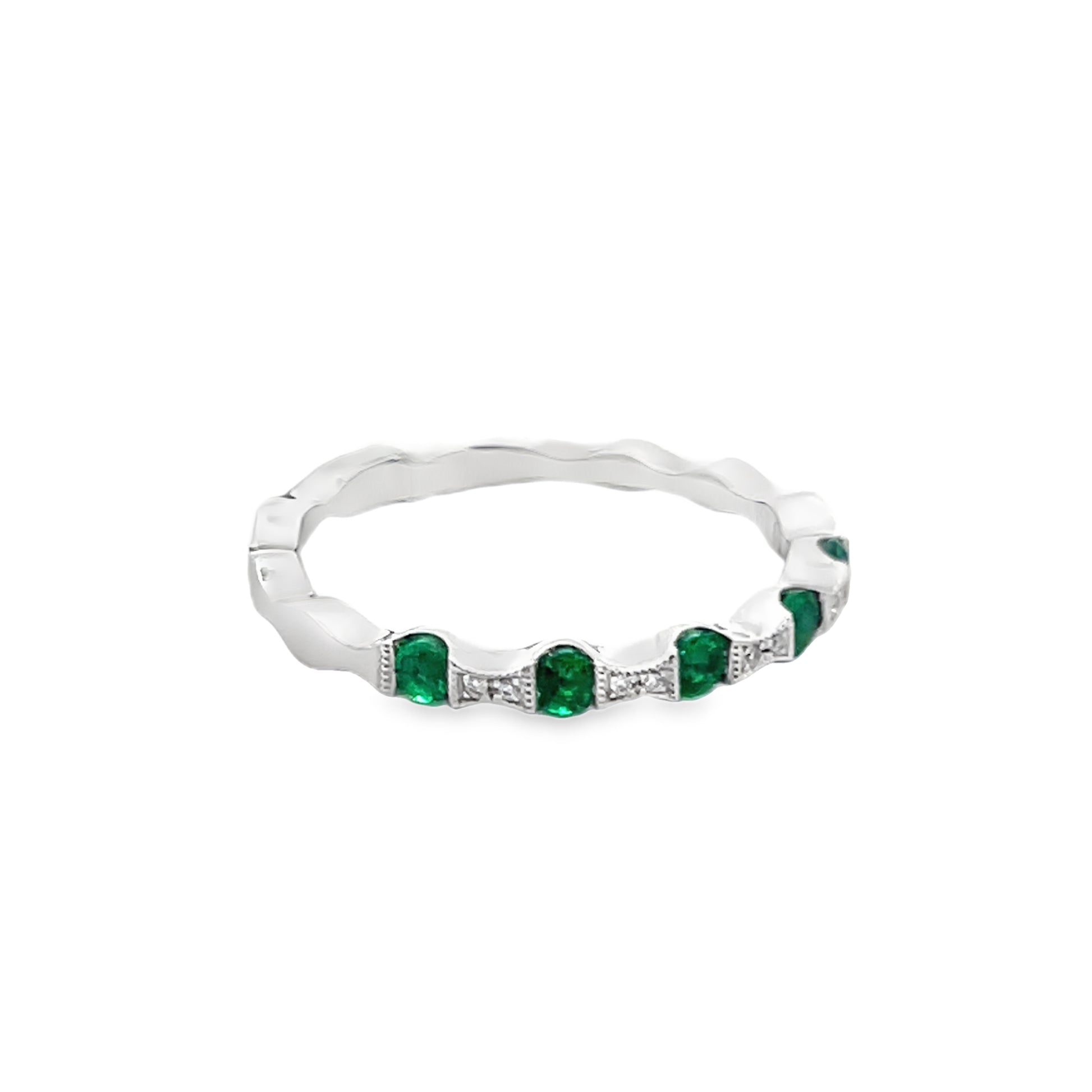 Wavy Emerald and Diamond Gemstone Stackable Ring in 14K White Gold