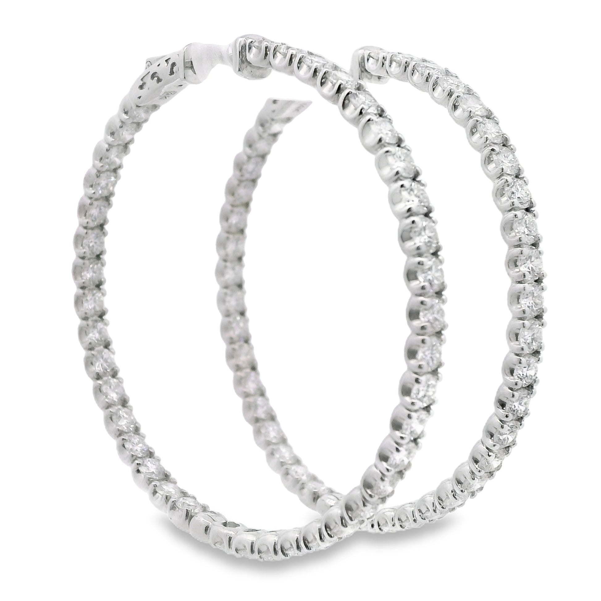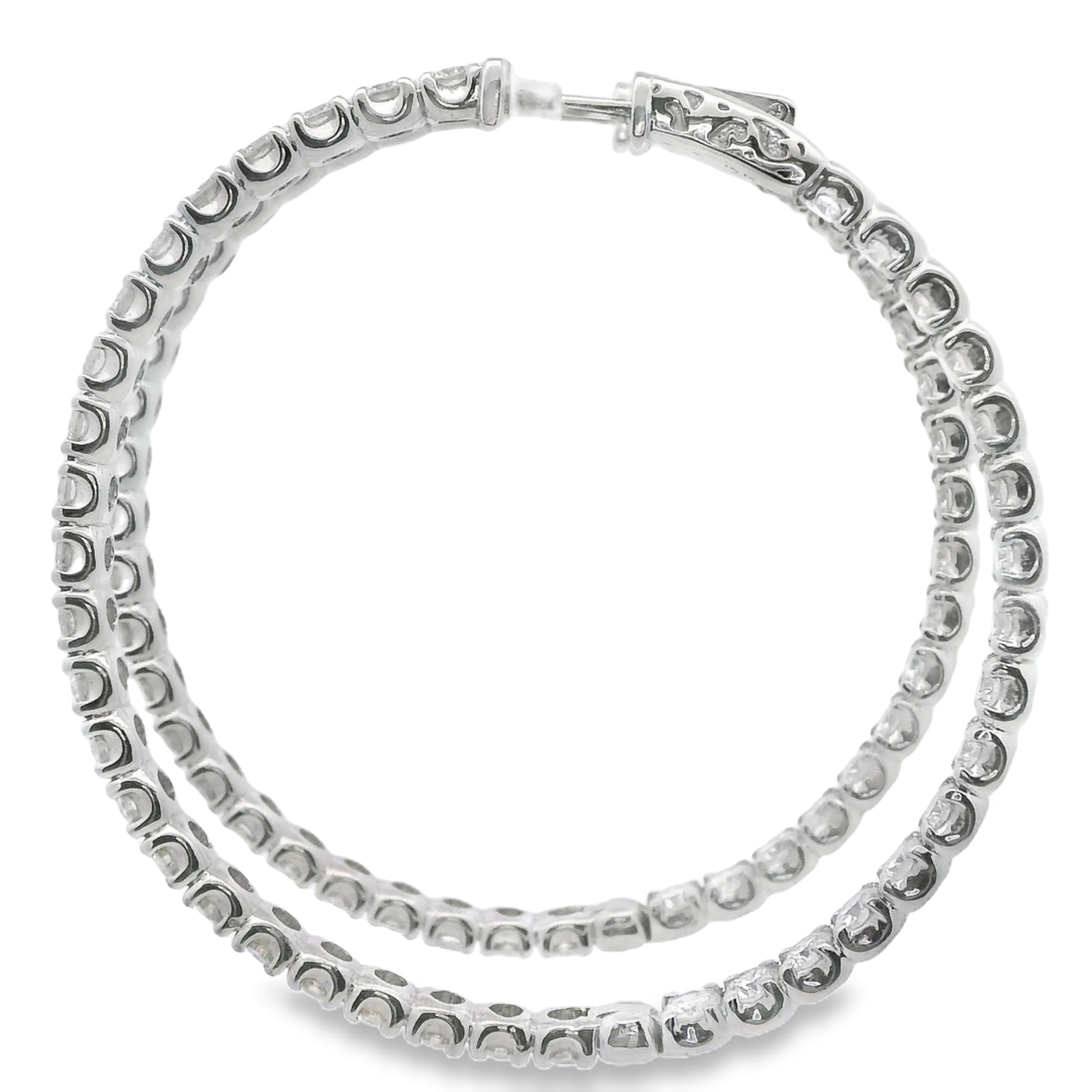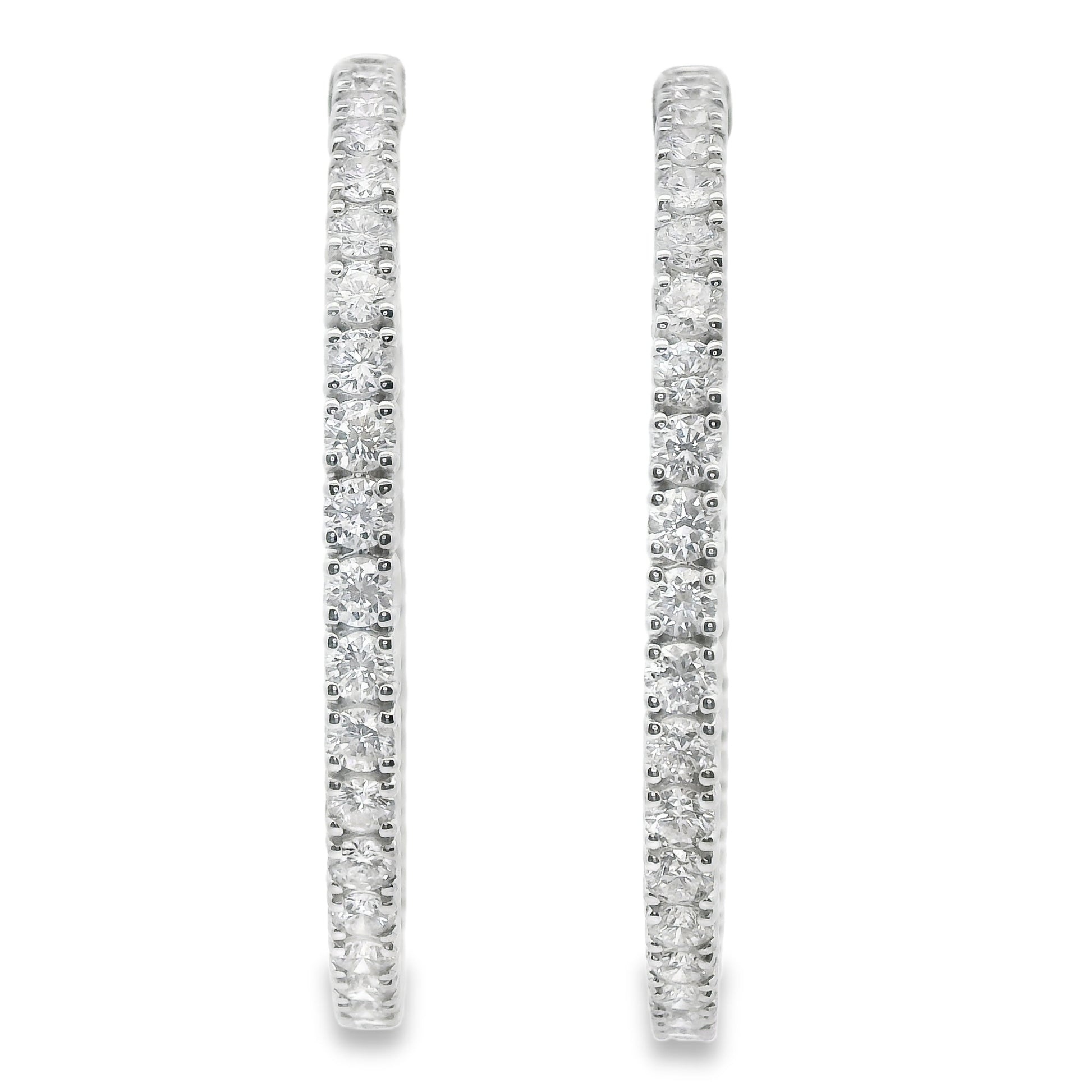Experience timeless sophistication with these exquisite white gold hoop earrings, showcasing 8.00 CT T.W. of dazzling round brilliant diamonds. Crafted in 14K white gold, these earrings deliver exceptional sparkle and brilliance that complements any look. The classic hoop silhouette ensures effortless versatility, whether you're dressing up for special occasions or adding refined glamour to your daily style. A luxurious investment piece that transcends trends and becomes a cherished staple in your jewelry wardrobe.