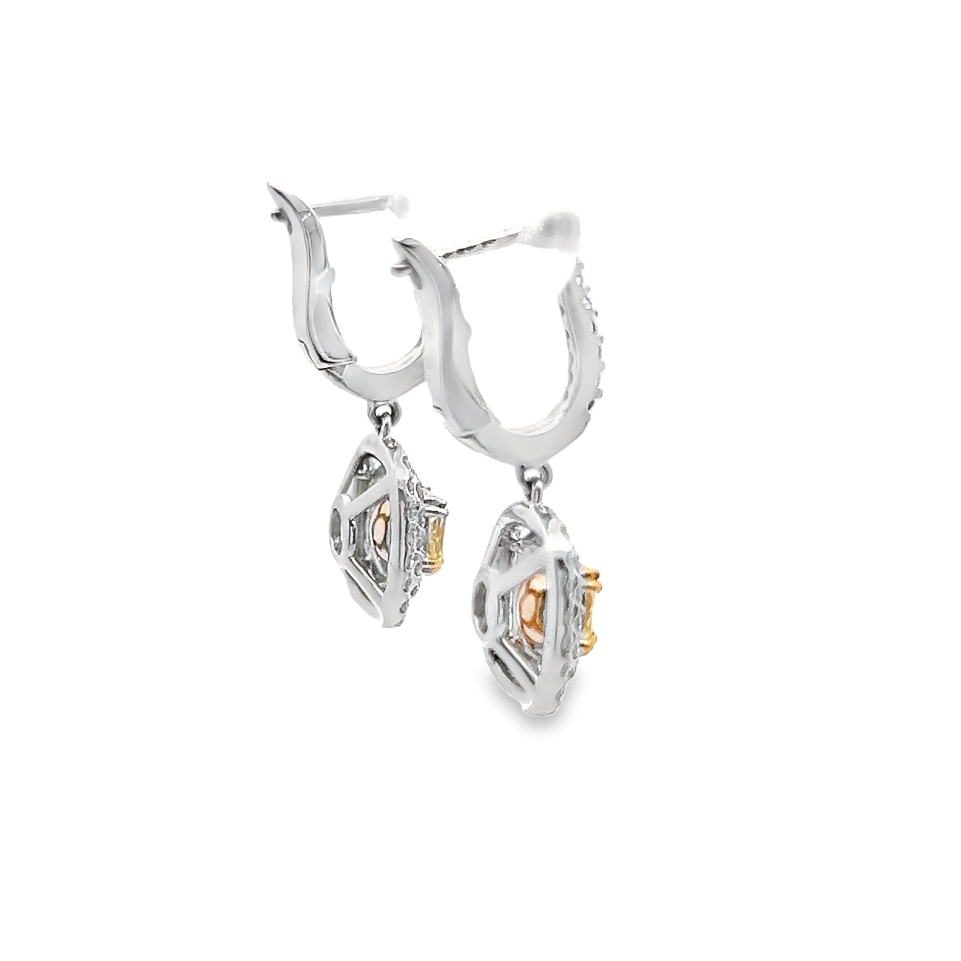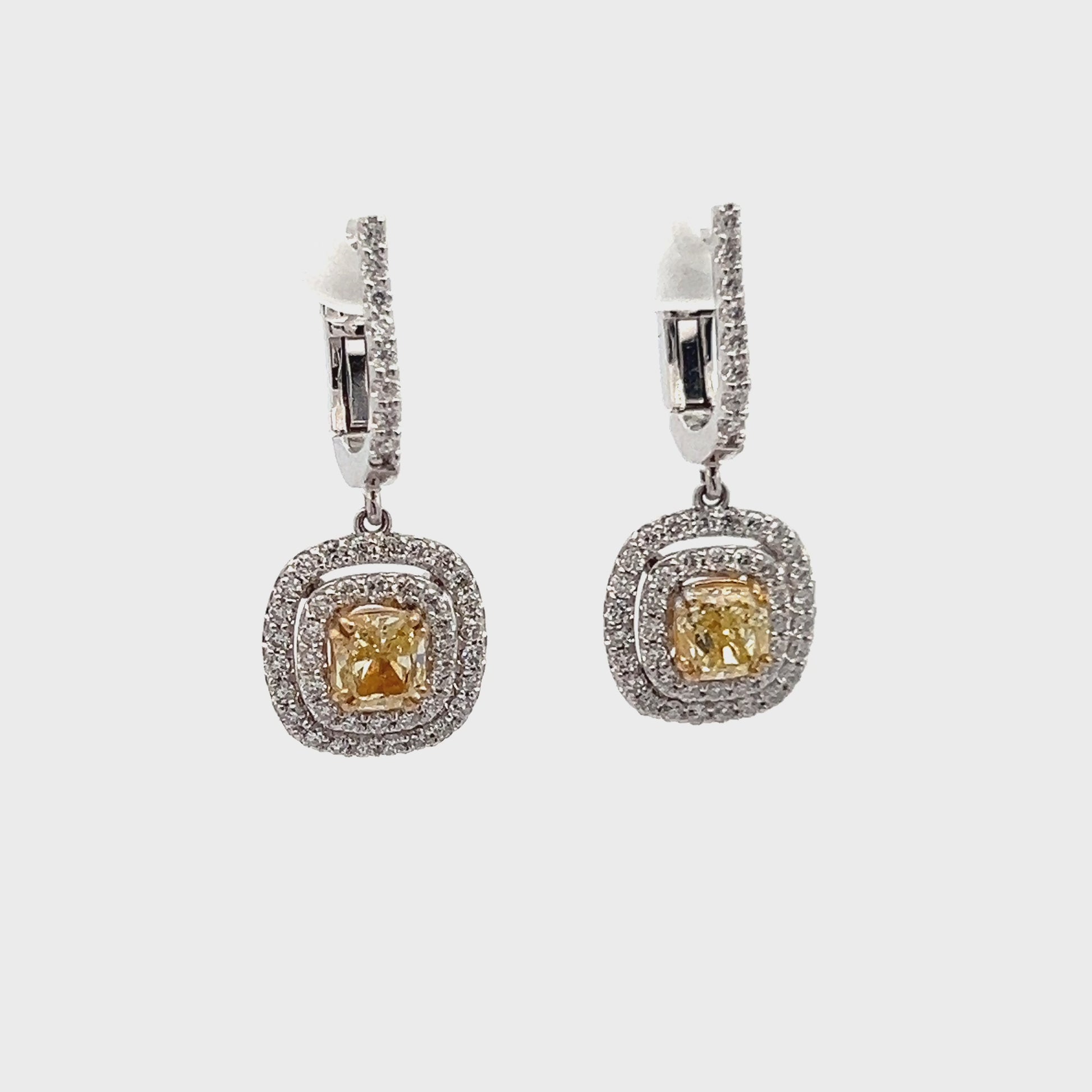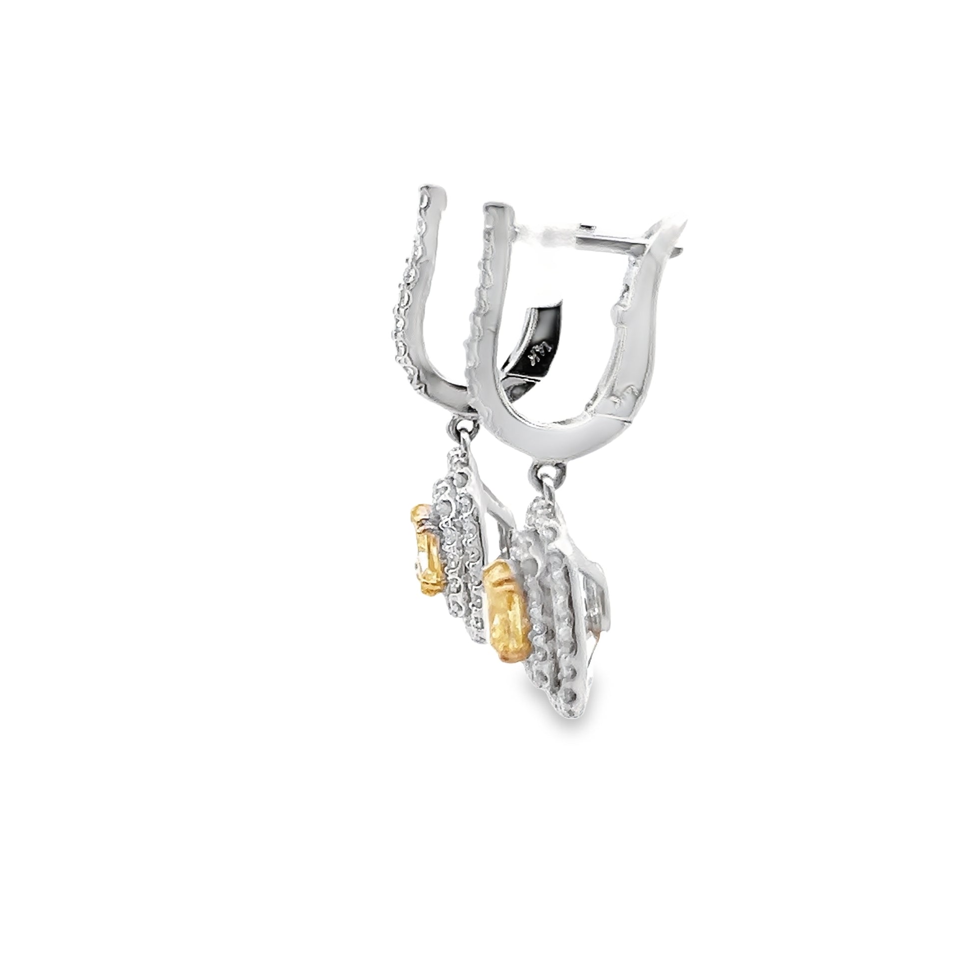 Yellow Diamond and White Diamond Dangly Earrings in 14K White Gold
