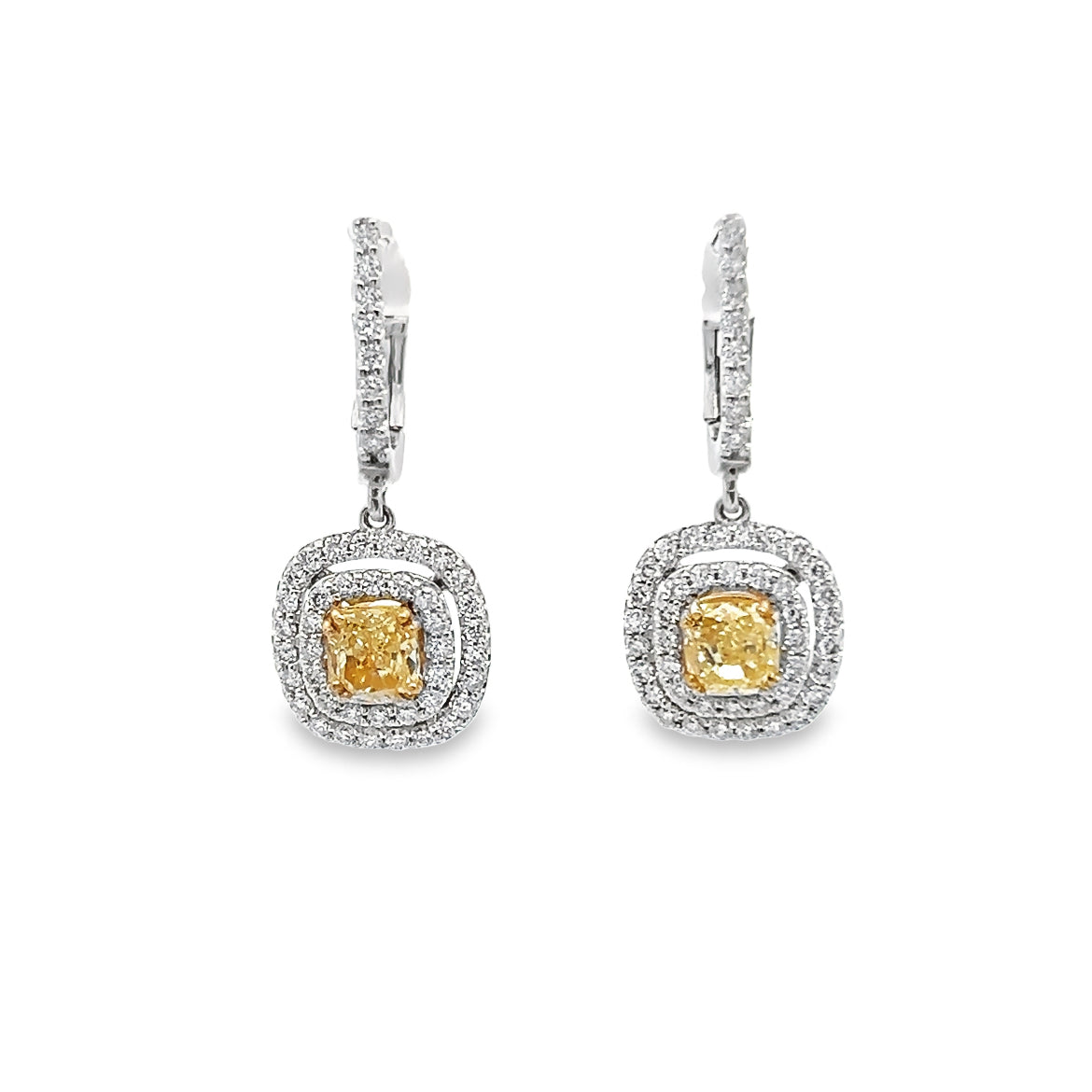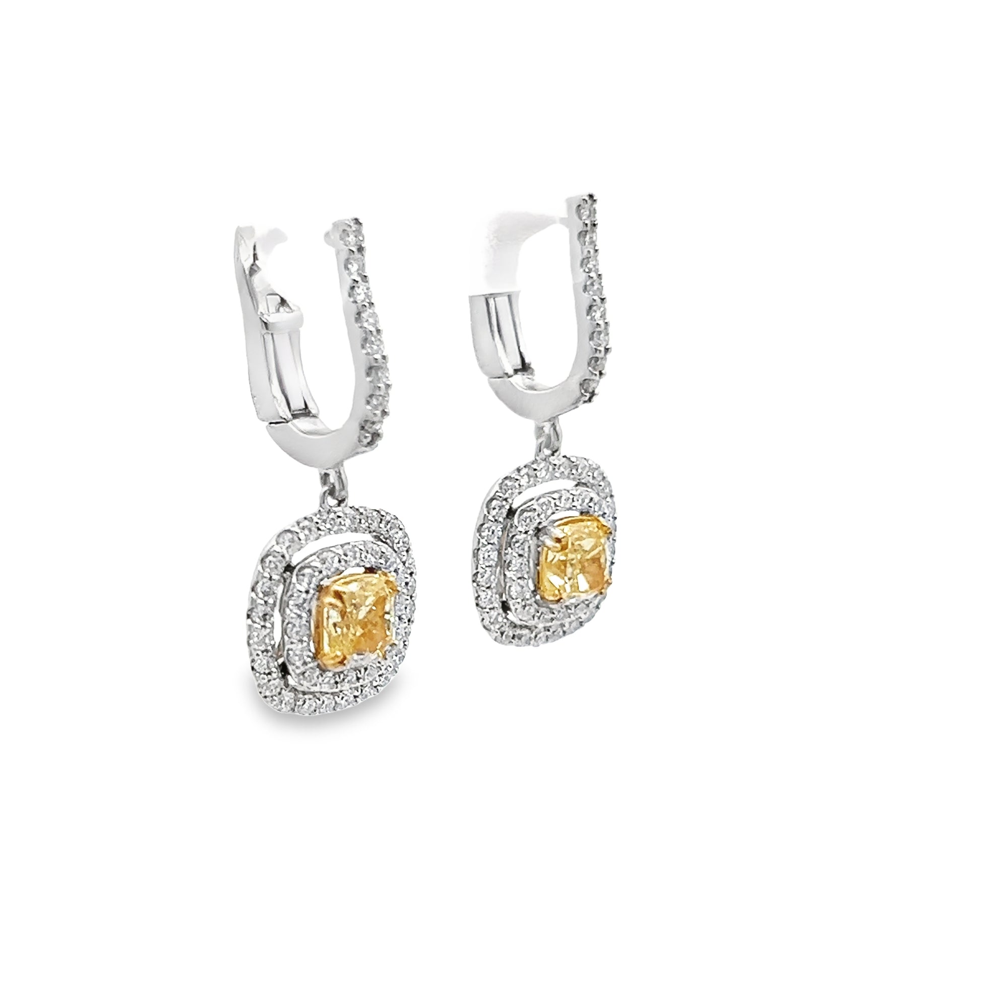 Indulge in sophistication with these exquisite Yellow Diamond Dangle Earrings. These earrings feature radiant yellow diamonds elegantly suspended from a lustrous 14K White Gold setting. The brilliant hue of these yellow diamonds, coupled with their captivating sparkle, adds a touch of glamour to any ensemble. Whether for a special occasion or to elevate everyday elegance, these earrings are a statement of refined luxury and timeless beauty.